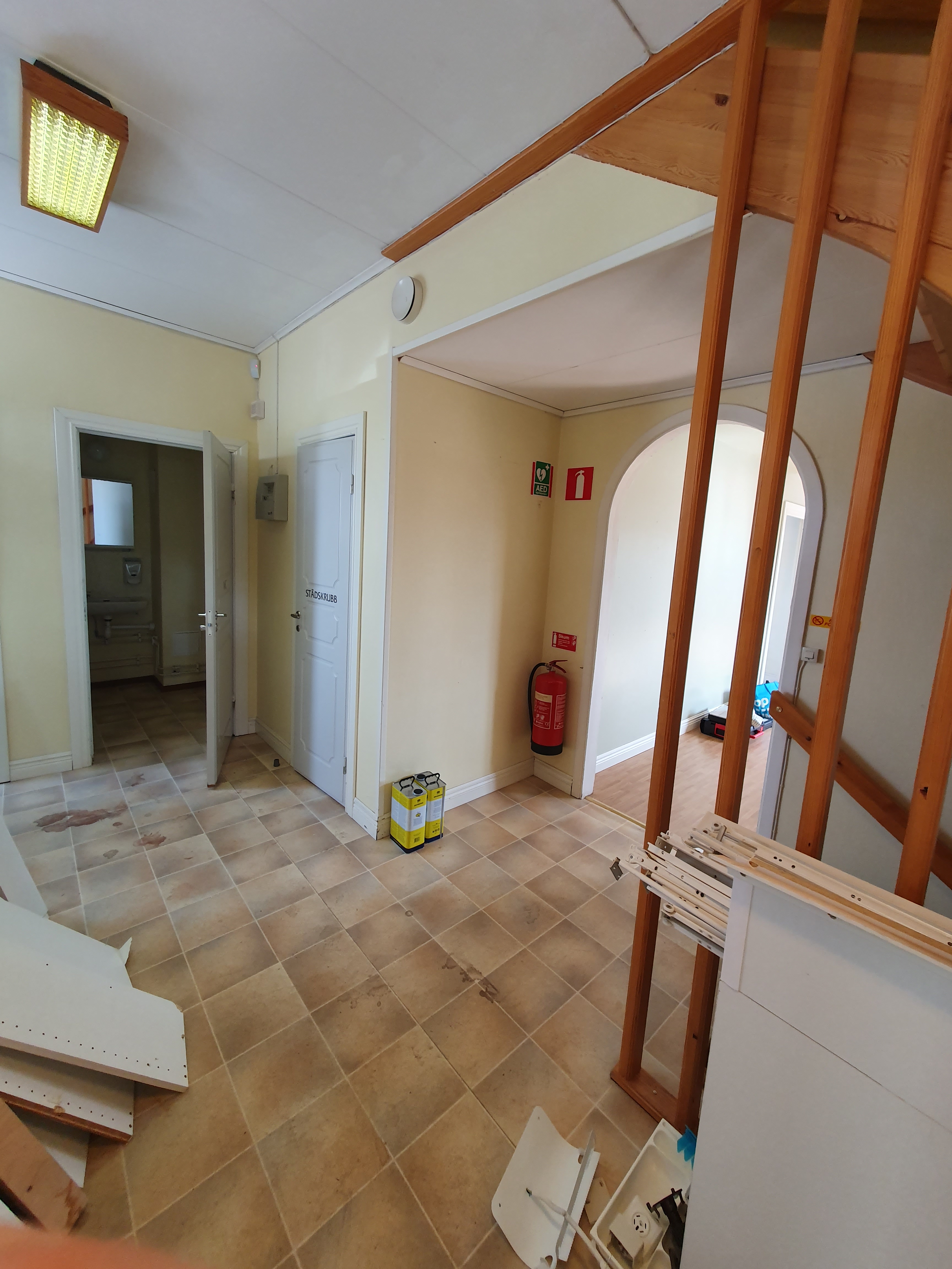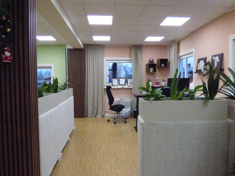 Visuell jämförelse före- och efter färgsättningen vid - Dalecos kontorsfastighet. En visuell resa som visar hur färgvalen ger Dalecos kontorsfastighet nytt liv och tydligare karaktär.